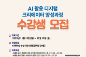 (경인미래신문=민경호 기자) 안성시는 디지털 역량 강화를 통한 안성 시민의 경제활동 참여를 지원하기 위해 '디지털 크리에이터 양성과정 2기' 수강생을 모집한다. 이번 교육은 새롭게 개관한 안성시 평생학습관에서 진행되며 오는 11월 5일까지 모집한다. 안성시에 거주하는 만 19세 이상 성인이라면 ‘안성 배움e’ 사이트를 통해 누구나 신청할 수 있으며 수강료는 전액 무료다. 교육은 디지털 콘텐츠 제작 역량을 높이는 데 중점을 두고 ▲AI 활용 SNS 콘텐츠 마케팅 크리에이터과정 ▲AI 활용 영상(영화) 크리에이터과정 ▲생성형 AI 브랜딩 크리에이터 등 3개 과정으로 운영된다. 교육 기간은 11월 10일부터 12월 19일까지이며 과정별 세부일정은 ‘안성 배움e’에서 확인할수 있다. 각 과정별로 20명씩 모집한다. 안성시 관계자는 “이번 교육은 AI활용 SNS 콘텐츠 마케팅과 AI활용 영상(영화) 편집 및 생성형 AI 등 디지털 시대에 꼭 필요한 기술을 시민들이 습득할 수 있는 좋은 기회가 될 것”이라며 “AI 활용 디지털 콘텐츠 제작에 관심 있는 시민들의 많은 참여를 바란다”고 전했다. 자세한 사항은 ‘안성 배움e’ 사이트에서 확인하거나 안성시 체육평생학습과로 문