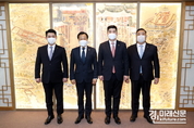(경인미래신문=민경호 기자) 장현국 경기도의회 의장(더민주, 수원7)은 ㈔한국청년회의소(한국JC) 관계자들과 만나 청년정책 강화를 위한 협력방안 등에 대해 논의했다. 장현국 의장은 지난 25일 의장 접견실에서 한국청년회의소 강태준 사무총장 및 수원청년회의소 이상호 회장, 현준원 상임부회장과 접견했다. 이번 만남은 수원청년회의소 회장을 역임하고 올 들어 중앙회 사무총장으로 임명된 강태준 사무총장이 신년 인사차 접견을 요청하면서 성사됐다. 장현국 의장은 "일자리 창출 등의 청년 대책은 우리사회에서 가장 시급히 해결해야 할 현안 중 하나"라며 "경기도의회는 청년단체인 한국청년회의소와 꾸준히 협력하며 실질적 대안을 모색할 수 있도록 노력하겠다"라고 말했다. 한편 한국JC는 만20세에서 40세 미만의 청년층으로 구성된 국제 청년민간단체로 국내에 1951년 창립된 이래 현재 전국 303여 지방JC에서 1만 2000여명의 회원이 활동 중이다.