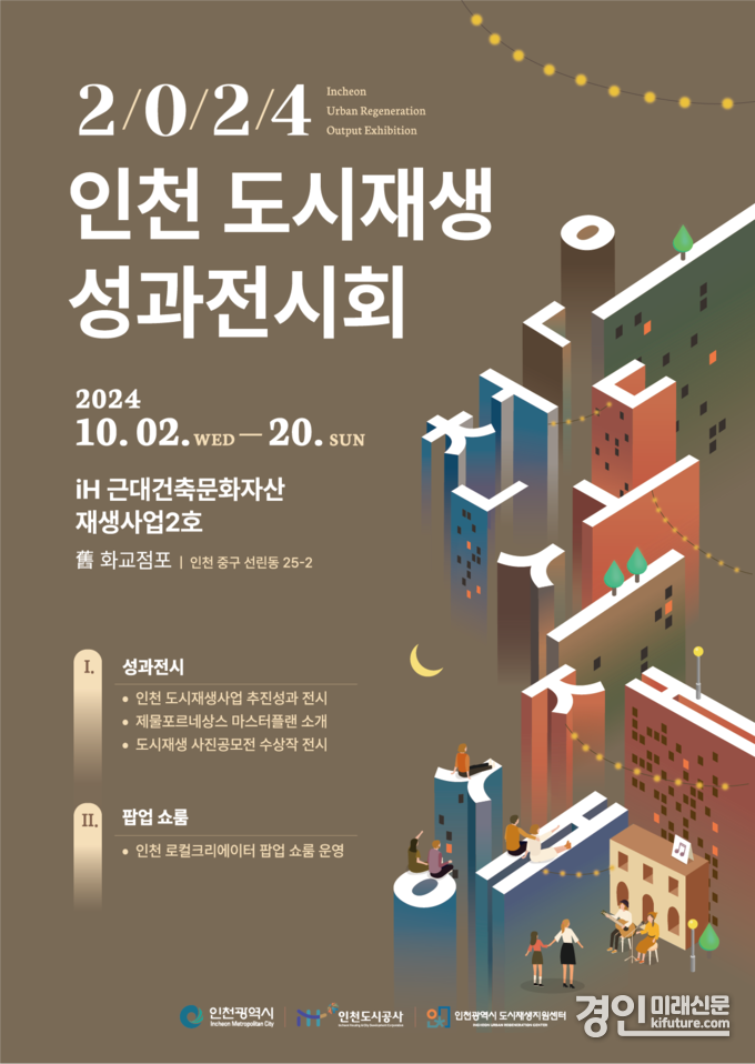 (경인미래신문=민경호 기자) 인천광역시 도시재생지원센터(이하 ‘인천도시재생센터’)는 2일부터 20일까지 약 3주간 '2024 인천 도시재생 성과전시회’를 개최한다고 밝혔다.