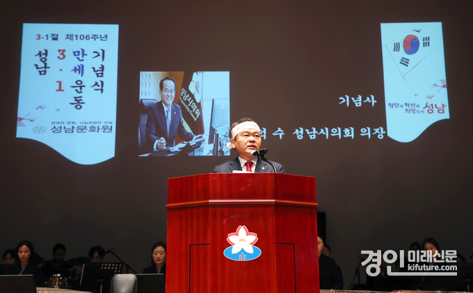 (경인미래신문=민경호 기자) 이덕수 의장을 비롯한 성남시의회 의원들이 1일 성남시청 온누리실에서 열린 제106주년 성남 3.1만세운동 기념식에 참석했다.