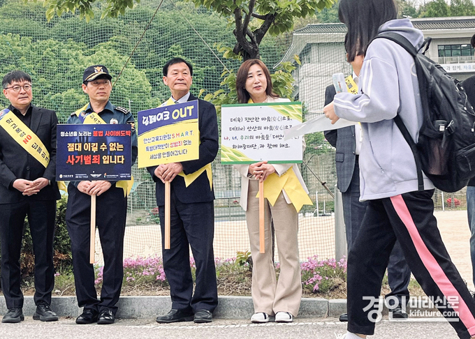 (경인미래신문=민경호 기자) 안산시의회 박태순 의장이 1일 성포고등학교에서 실시된 ‘도박 근절주간 등굣길 캠페인, 학교폭력·도박 stop! 안전하고 행복한 성포고’ 캠페인에 참여했다.