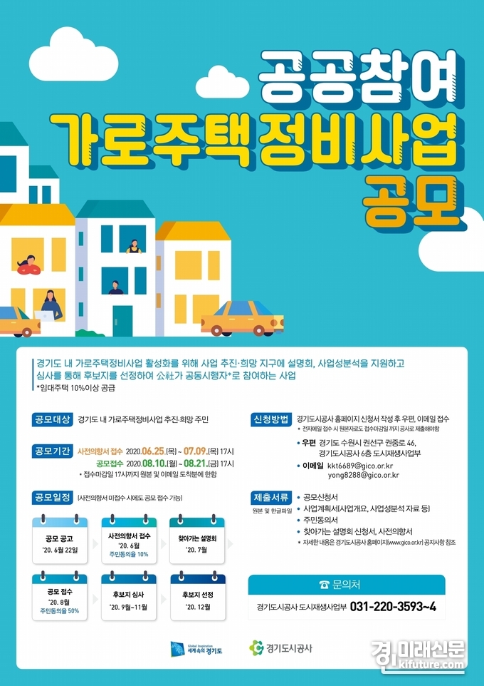 (경인미래신문=권혜경 기자) 경기도시공사(사장 이헌욱)는 공공참여 가로주택정비사업 공모가 본격 시행된다고 22일 밝혔다.