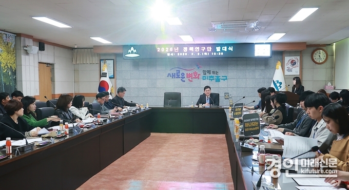(경인미래신문=민경호 기자) 인천 미추홀구(구청장 이영훈)는 지난 2일 구청 중회의실에서 ‘2026년 정책연구단 발대식’을 개최하고 구정 전반의 정책 방향과 연계한 정책 발굴에 본격적으로 착수했다.