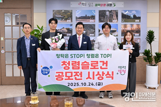 (경인미래신문=민경호 기자) 양평군은 24일 ‘2025 청렴 슬로건 시상식’을 개최하고, 공정하고 투명한 공직문화 확산을 위해 추진한 ‘청렴 슬로건 공모전’의 수상작을 발표했다.