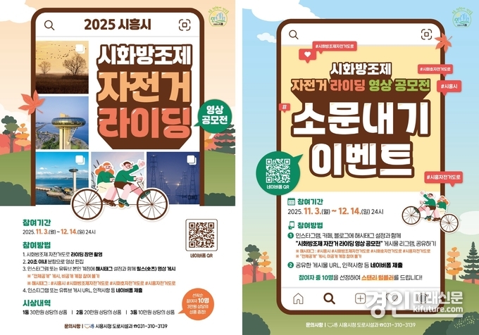 임병택 시흥시장은 “시화방조제 자전거도로는 아름다운 해안을 따라 달릴 수 있는 대표적인 힐링 코스”라며 “이번 공모전을 통해 더 많은 시민이 새롭게 단장된 자전거길을 즐기고 시흥시의 매력을 널리 알리는 계기가 되길 바란다”라고 말했다.