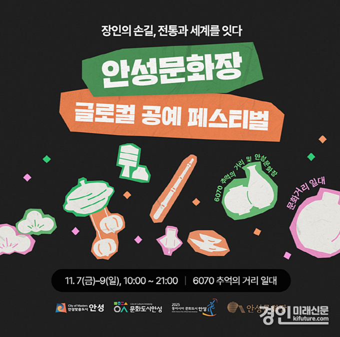 (경인미래신문=민경호 기자) 안성시는 7일부터 9일까지 3일간 ‘2025 글로컬 공예 페스티벌’을 개최한다.