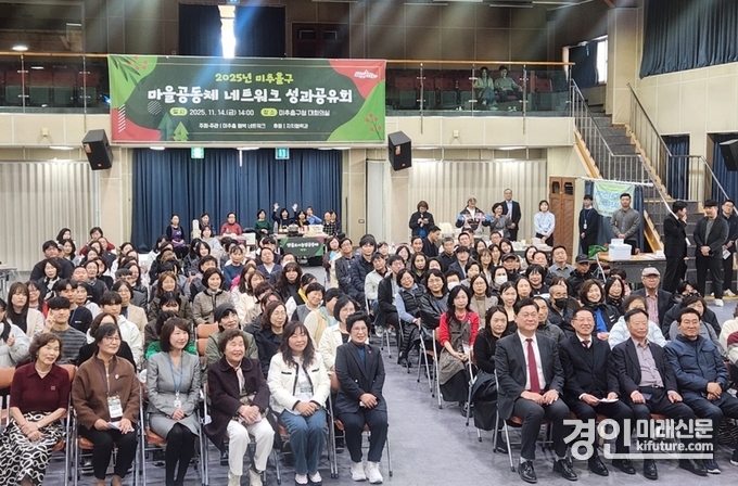 (경인미래신문=민경호 기자) 인천 미추홀구(구청장 이영훈)와 마을공동체 네트워크 ‘미추홀 행복 네트워크’(대표 하미경)는 14일 구청 대회의실에서 ‘2025 마을공동체 네트워크 성과공유회’를 개최했다.