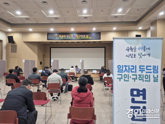 (경인미래신문=민경호 기자) 수원특례시(시장 이재준)가 지난 20일 선경도서관 강당에서 연 ‘11월 일자리 두드림 구인·구직의 날’ 행사에서 51명이 현장면접을 봤다.