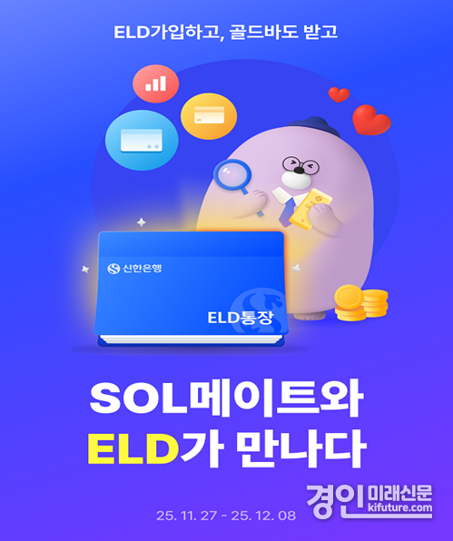 더불어 신한은행은 ELD 연간 판매액 최대 실적 달성을 기념해 고객 감사 이벤트도 함께 진행한다. ‘SOL메이트 전용 ELD’ 신규 가입 고객 중 추첨을 통해 골드바 및 커피 쿠폰을 증정할 예정이다.