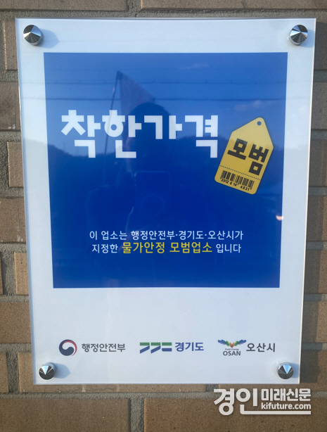 (경인미래신문=민경호 기자) 오산시(시장 이권재)는 11월 지역 물가안정과 건전한 가격 질서 확립을 위해 ‘착한가격업소’ 6곳을 신규 지정했다고 밝혔다.