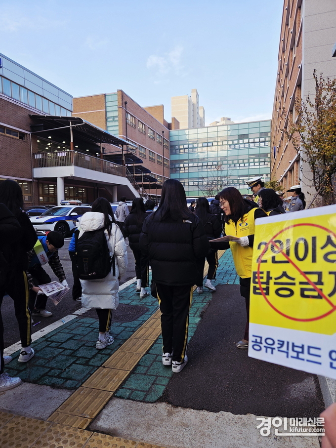(경인미래신문=민경호 기자) 인천 서구(구청장 강범석)는 청소년들의 무분별한 공유 킥보드 이용이 증가함에 따라 서부경찰서, 서부교육지원청, 가현중학교, 서부모범운전자회, 서부녹색어머니연합회 관계자와 기관합동으로 등굣길 교통안전 캠페인을 실시했다고 밝혔다.