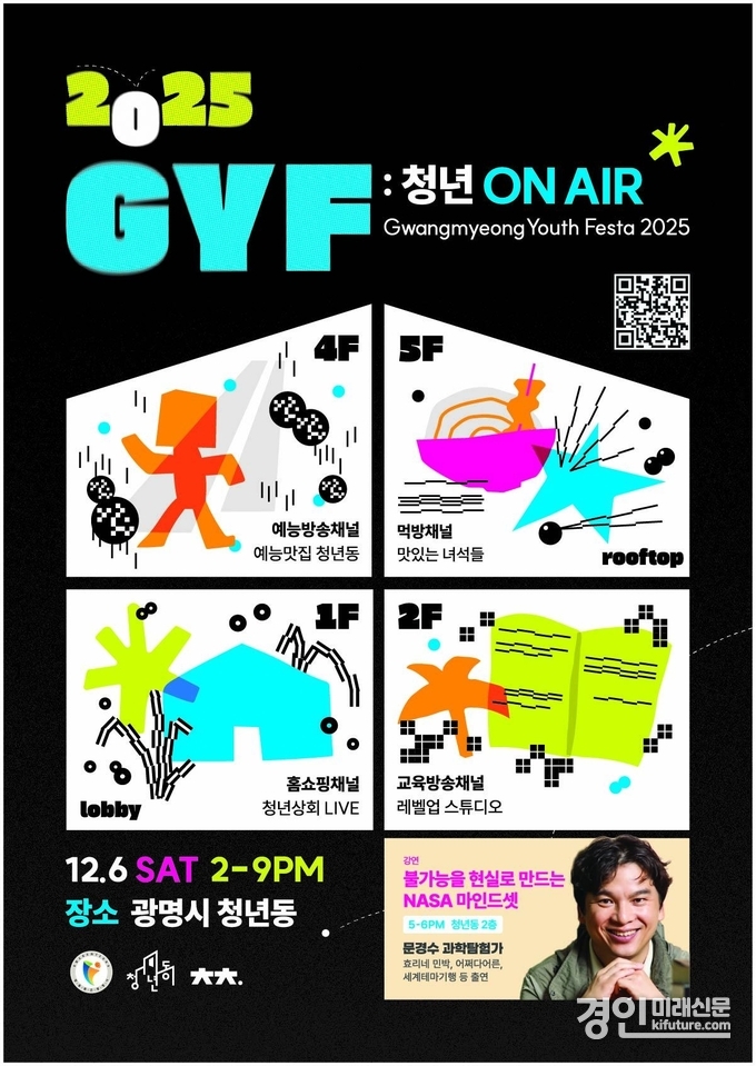 광명시(시장 박승원)는 오는 6일 열린시민청과 청년동 일원에서 ‘2025 청년대회 G.Y.F 2025 : 청년 온에어’(Gwangmyeong Youth Festa, 이하 G.Y.F 2025)를 개최한다.