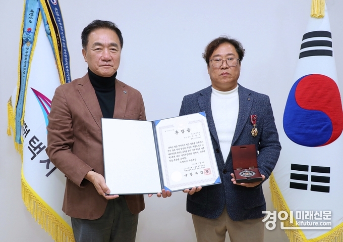 (경인미래신문=민경호 기자) 평택시(시장 정장선)는 국방부에서 추진하는 ‘6·25전쟁 무공훈장 주인공 찾기 캠페인’의 하나로 지난 10일 평택시 모곡동에 거주하는 무공훈장 故 김준기 님의 손자에게 국방부장관을 대신해 훈장을 전수했다.
