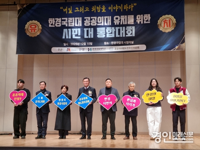 (경인미래신문=민경호 기자) 안성시는 한경국립대학교 및 한경국립대 공공의대 범도민추진위원회와 공동으로 지난 10일 한경대 산학협력관 시청각실에서 '한경국립대 공공의대 유치를 위한 시민 대통합 대회'를 개최했다.