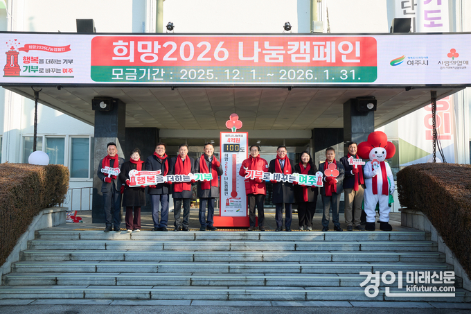(경인미래신문=민경호 기자) 지난 12일 여주시(시장 이충우)와 경기 사회복지공동모금회(회장 권인욱)는 연말연시 나눔문화 확산을 위한 '희망2026 나눔캠페인'의 시작을 알리는 사랑의 온도탑 제막식을 개최했다.
