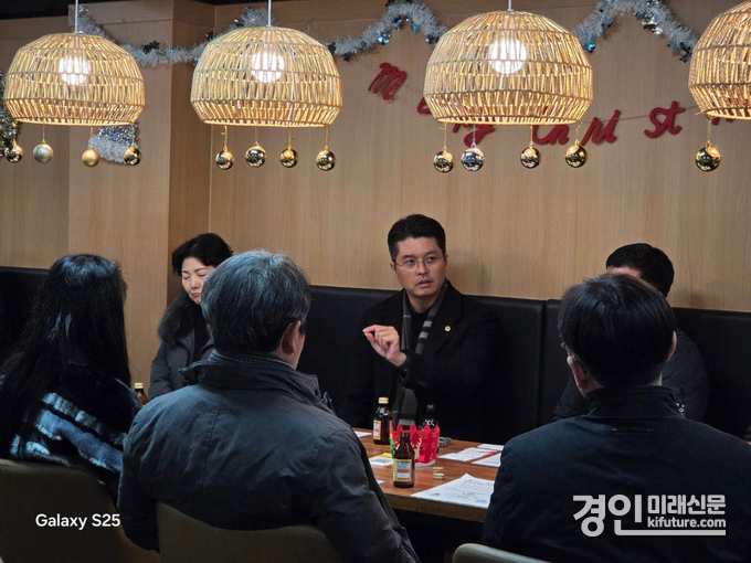 (경인미래신문=민경호 기자) 경기도의회 경제노동위원회 이재영 의원(더불어민주당, 부천3)은 지난 15일 부천시 중동사랑시장 상인회 회의실에서 열린 ‘중동사랑시장–배달특급 전통시장 입점 시범사업’ 추진을 위한 정책 간담회에 참여했다.