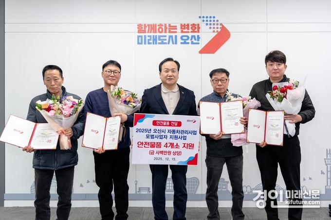 (경인미래신문=민경호 기자) 오산시(시장 이권재)는 지난 15일 지역 자동차관리산업의 건전한 발전과 시민 대상 서비스 품질 향상에 기여한 ‘2025년 오산시 자동차관리사업 모범사업자’ 4개 업체를 선정하고 모범사업자 지정증을 전달했다.