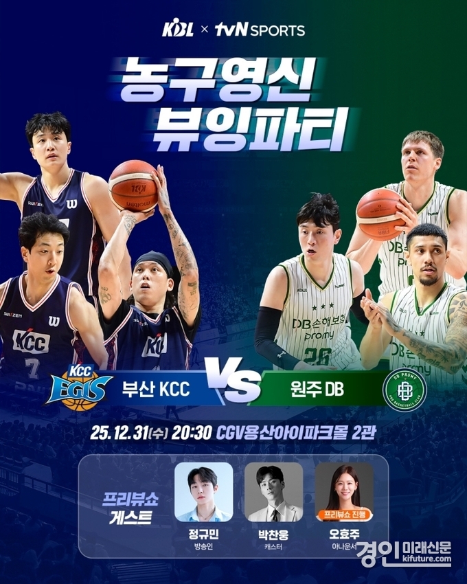 (경인미래신문=민경호 기자) CGV는 KBL, CJ ENM tvN SPORTS와 함께 ‘KBL x tvN SPORTS 농구영신 뷰잉파티 – 부산 KCC vs 원주 DB’를 진행한다고 19일 밝혔다.