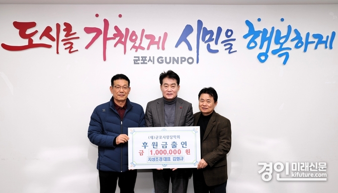 한편 지난 29일에는 군포시청 시장실에서 지성조경 김형규 대표가 장학금 1백만원을 기탁하며 ”미래를 향해 성실히 나아가는 학생들을 응원하는 마음으로 조금이나마 보탬이 되고자 장학금을 기탁하게 되었다. 학생들이 스스로의 가능성을 믿고 꿈을 향해 나아가길 바란다”고 말했다.