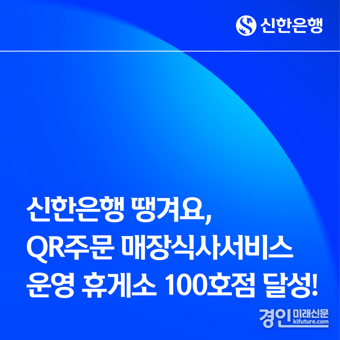 (경인미래신문=민경호 기자) 신한은행(은행장 정상혁)은 땡겨요의 휴게소 QR주문 매장식사서비스를 운영하는 휴게소가 전국 100곳을 달성했다고 30일 밝혔다.