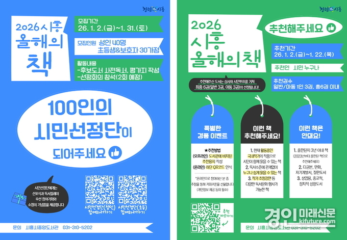한편 올해의 책 도서 추천은 2026년 1월 22일까지로 시흥시 공공도서관 누리집을 통한 온라인 신청과 공공도서관 13곳 내 추천보드를 통한 오프라인 신청이 가능하다.