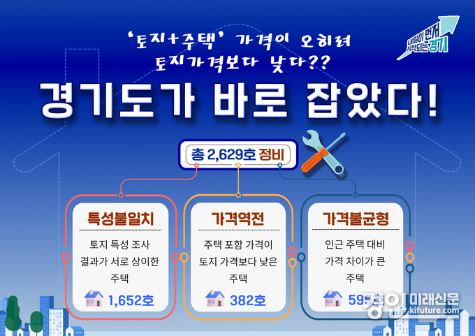 (경인미래신문=민경호 기자) 경기도는 조세·부담금 산정의 기준이 되는 부동산 공시가격의 적정성과 신뢰도를 높이기 위해 지난해 도내 주택 2629호에 대한 주택공시가격 정비를 완료했다고 20일 밝혔다.