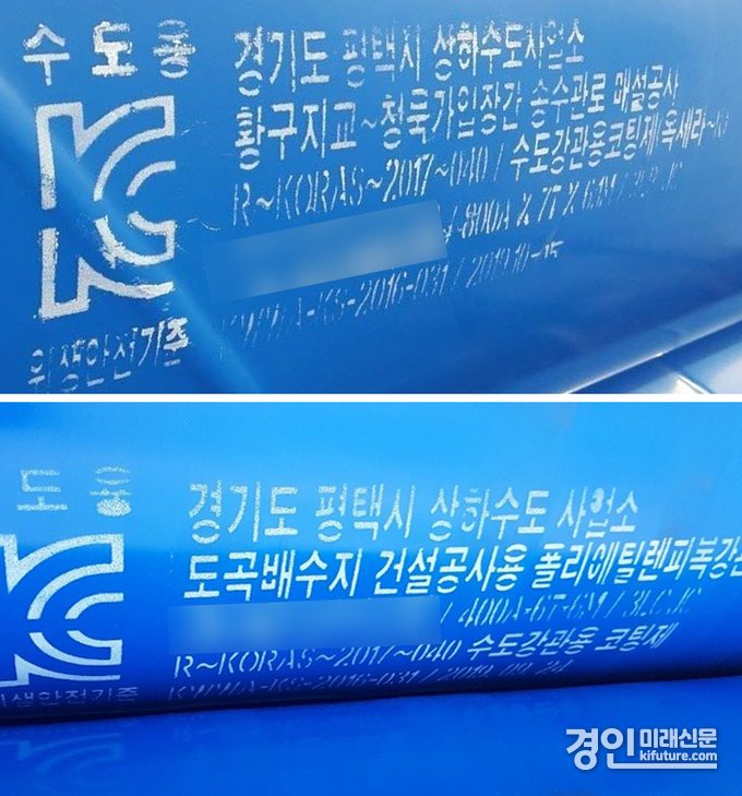 이에 경인미래신문은 평택시가 사용한 상수도관에 표기된 인증번호가 확인되지 않는 미인증 제품이라고 주장하면서 평택시에 납품된 상수도관 사진 등 관련증거들을 제출했다.(관련기사, 경인미래신문 2025년 9월 29일자 '수원고법, 평택시 미승인 상수도관 납품 관련 항소 기각')