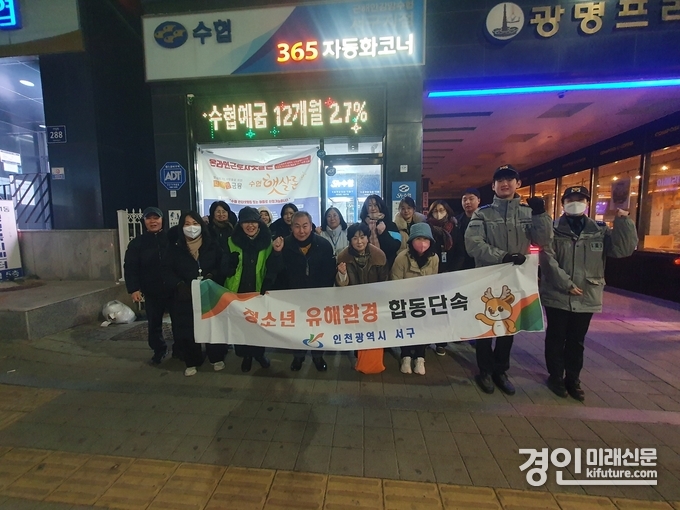 (경인미래신문=민경호 기자) 인천 서구(구청장 강범석)는 지난 27일 음식점 및 숙박업소가 밀집되어 있는 석남동 509번지 일대에서 민·관 합동 청소년 유해환경 합동점검을 실시했다고 밝혔다.
