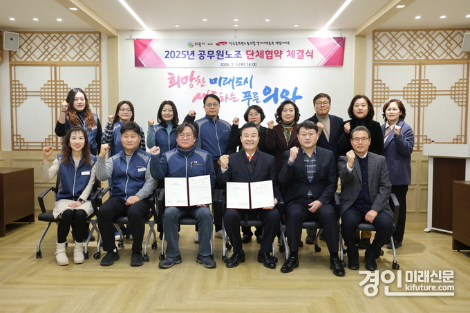 (경인미래신문=민경호 기자) 의왕시가 지난 5일 시청 소회의실에서 전국공무원노동조합 경기지역본부 의왕시지부와 ‘공무원 단체협약’을 체결했다.