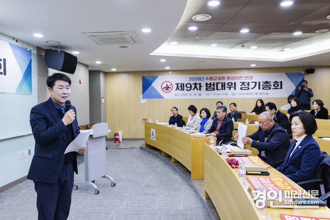 (경인미래신문=민경호 기자) 화성특례시의회(의장 배정수)는 9일 남양읍 모두누림센터에서 열린 '수원군공항 화성이전 반대 범시민대책위원회 2026년 총회'에 참석해 시민사회의 단호한 반대 의지를 재확인하고 시민주권에 기반한 합리적 절차 확립을 강력히 촉구했다.