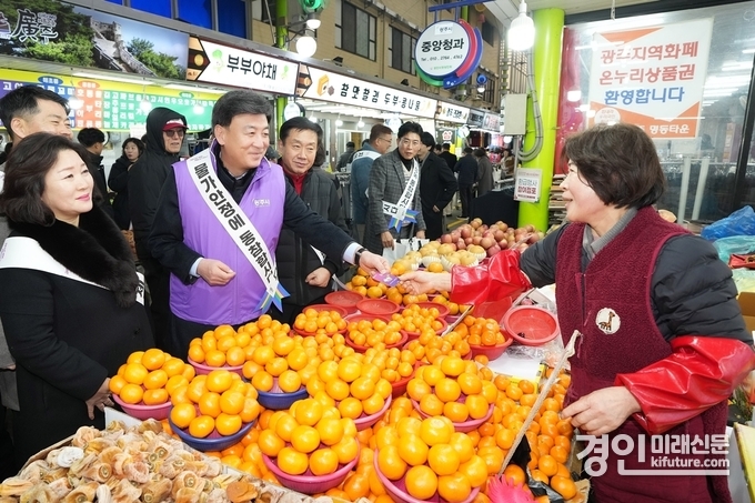 (경인미래신문=민경호 기자) 광주시는 지난 10일 설 명절을 맞아 경안시장에서 지역경제 활성화와 물가 안정을 위한 ‘물가 안정 캠페인 및 전통시장 장보기 행사’를 개최했다.