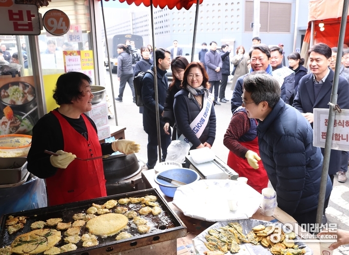 김동연 지사는 점포를 일일이 돌아다니며 필요한 제수 용품을 구입하는 등 직접 장을 보며 “요즘 장사는 어떠신지”, “빵맛이 유명하다고 들었다. 대목 좀 보셨으면 좋겠다”, “조원시장 김치가 맛있다고 하더라”, “새해 복 많이 받으시고 장사 잘 되세요” 등의 덕담을 건넸다.