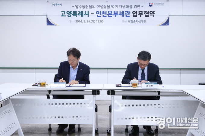 (경인미래신문=권민준 기자) 고양특례시(시장 이동환)와 인천본부세관은 지난 24일 장항습지생태관에서 장항습지에 서식하는 야생동물의 생태환경 지원을 위한 업무협약을 체결했다고 밝혔다.