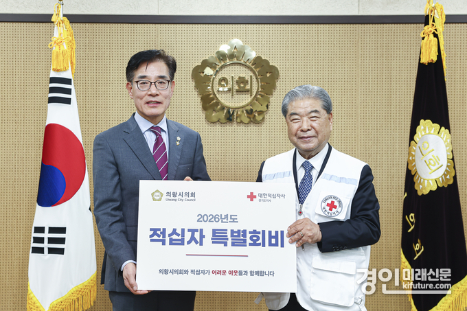 (경인미래신문=민경호 기자) 의왕시의회(의장 김학기)가 지난 2월 26일 의왕시의회 대한적십자사 특별회비 전달식을 개최하며 따뜻한 나눔 실천에 앞장섰다.
