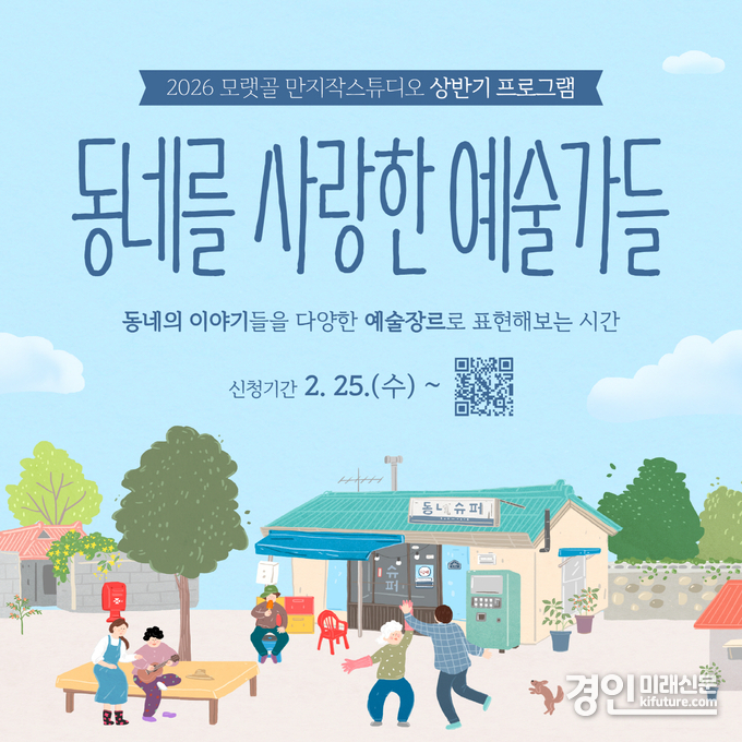 (경인미래신문=민경호 기자) 시흥시(시장 임병택)는 2026 문화재생공간 모랫골 만지작 스튜디오 상반기 프로그램 ‘동네를 사랑한 예술가들’ 참가자를 오는 16일까지 모집한다.