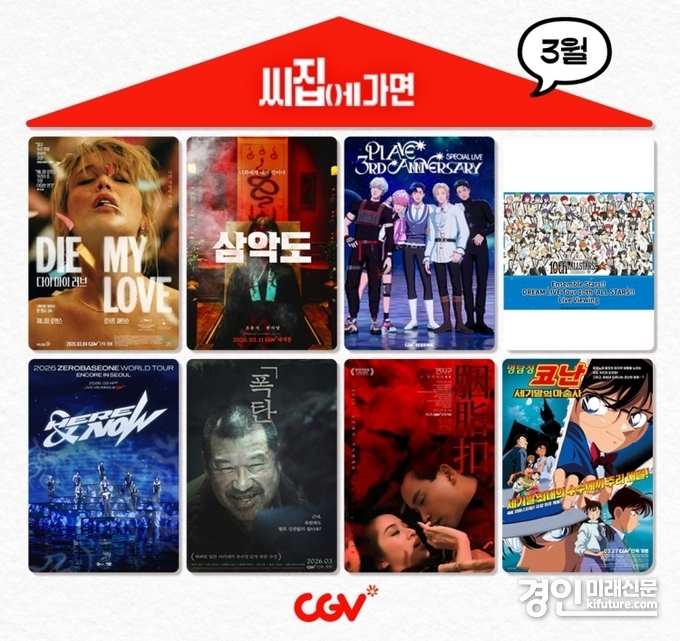 전정현 CJ CGV 콘텐츠운영팀장은 “3월에는 장르와 시대, 국가를 넘나드는 화제작과 글로벌 팬덤 콘텐츠를 준비했으니 많은 관심 부탁드린다”며 “앞으로도 CGV에서만 만나볼 수 있는 ‘씨집에 가면’을 통해 극장에서 즐길 수 있는 콘텐츠 경험의 폭을 더욱 넓혀 나갈 것”이라고 말했다.