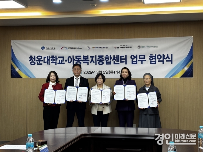 협약에는 청운대학교와 남동구 아동복지종합센터를 비롯해 인천시아동복지종합센터연합회 소속 기관인 누리마루, 푸른마을, 솔샘나우리가 참여하며, 각 기관은 상호 협력을 통해 아동복지 분야의 다양한 연계 활동을 추진할 예정이다.