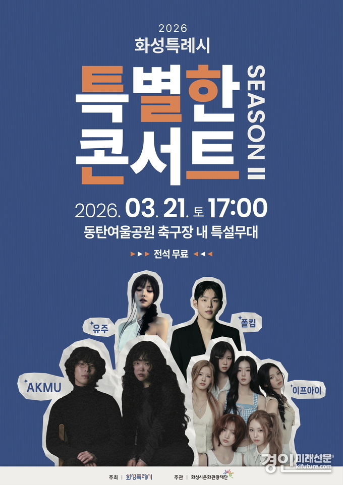 (경인미래신문=민경호 기자) 화성특례시(시장 정명근)가 오는 21일 제26회 화성특례시민의 날을 맞아 동탄 여울공원 축구장 내 특설무대에서 ‘화성특례시 특별한 콘서트 시즌2’를 연다.