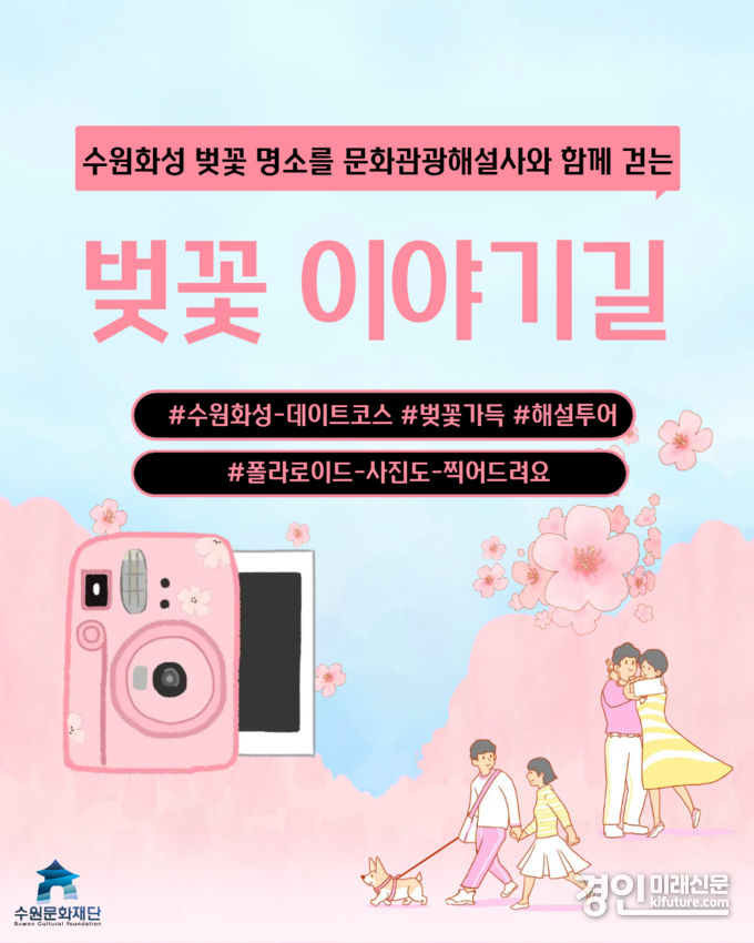 (경인미래신문=민경호 기자) 수원문화재단(대표이사 곽도용)은 내달 4일부터 벚꽃 개화 시기를 맞아 특별 프로그램을 운영한다.