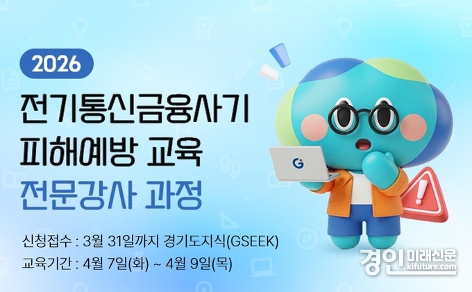 (경인미래신문=민경호 기자) 경기도가 전기통신금융사기(보이스피싱) 피해 예방 교육 전문강사 양성을 위해 오는 31일까지 교육 참가자를 모집한다.