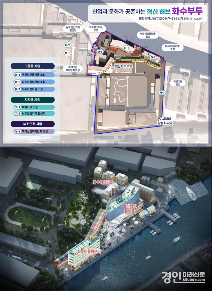 (경인미래신문=민경호 기자) 인천광역시(시장 유정복)는 과거 새우젓 시장 등으로 번성했던 인천 화수부두 일원을 고부가가치 첨단 뿌리산업의 핵심 거점으로 탈바꿈시키는 도시재생사업을 본격 추진한다.