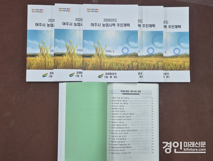 (경인미래신문=민경호 기자) 여주시(시장 이충우)는 관내 농업인들이 시에서 추진하는 농업분야 지원정책을 한눈에 파악하고 실질적인 혜택을 받을 수 있도록 농정 전반을 아우르는 업무편람인 ‘2026년 여주시 농업시책 추진계획’ 책자 100권을 발간하여 읍·면·동 및 농업인 단체에 배부했다고 밝혔다.