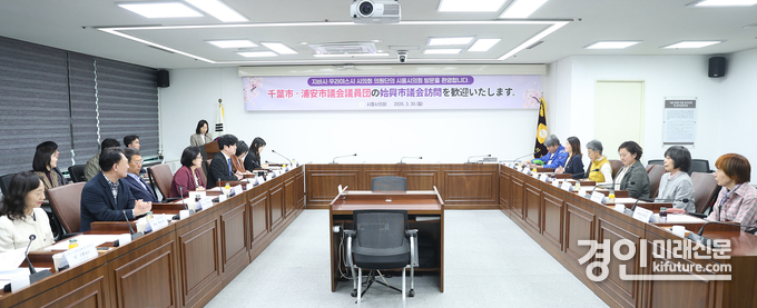 (경인미래신문=민경호 기자) 시흥시의회 교육복지위원회(위원장 김진영)는 30일 친환경 무상급식 정책 벤치마킹을 위해 시흥시를 방문한 일본 지바현 지바시·우라야스시 시의원단(이하 시의원단)과 간담회를 열고 상호 정책 이해 증진과 교류 기반을 마련했다.