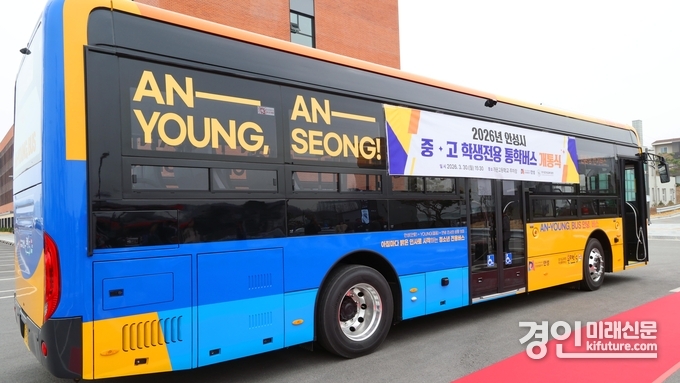 (경인미래신문=민경호 기자) 안성시는 지난 30일 가온고등학교에서 대중교통 불편지역 중·고등학생들의 통학 환경 개선을 위한 ‘학생 전용 통학 순환버스 안(安)녕(YOUNG)버스’ 개통식을 개최하고 본격적인 운행에 들어갔다.