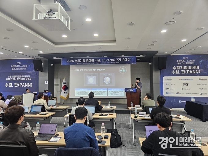 (경인미래신문=민경호 기자) 수원특례시(시장 이재준)가 지난 2일 수원벤처밸리2 기업지원센터 대회의실에서 2026 수원기업 아이알(IR)데이 수원.판(PANN) 7기를 개최했다.