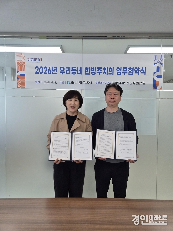 (경인미래신문=민경호 기자) 화성특례시는 병점구보건소에서 경희동수한의원, 유림한의원과 우리동네 한방주치의 사업 운영을 위한 업무협약을 체결했다고 밝혔다.