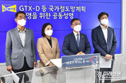 (경인미래신문=민경욱 기자) 김포시 선출직 공직자들이 수도권 서부권 광역급행철도 국가계획 반영을 강력 촉구했다. 김주영 국회의원(김포시갑), 박상혁 국회의원(김포시을), 정하영 김포시장, 신명순 시의장은 19일 오전 김포시청 소통실에 모여 이 같은 내용의 성명을 발표하고 공동의 노력을 다짐했다. 최종 계획 확정 전까지 공동보조를 맞추는 것은 물론 역할을 나눠 계획 포함 가능성을 더욱 높여가겠다는 것이다. 이들은 성명에서 "김포시는 김포한강신도시 건설과 연이은 도시개발로 인구 50만을 바라보는 도시로 성장했지만 미비한 광역교통망으로 시민들의 교통 불편은 말로는 표현할 수 없을 정도로 심각한 수준"이라며 "도시철도 김포골드라인은 출퇴근 첨두시간대의 혼잡률이 무려 285%에 달하고 서울로 연결되는 김포한강로 또한 정체가 극에 달하는 등 더 이상 수요를 감당하지 못하고 있다"고 지적했다. 그러면서 "수도권 서부지역은 앞으로 2기 신도시인 인천검단신도시는 물론 3기 신도시인 인천계양·부천대장 신도시까지 입주하게 된다"며 "서울로 가기 위해 올림픽대로와 남부순환로에 의존하는 현재의 도로상황은 포화상태이고 더 이상의 확장도 불가능하다"고 덧붙였다. 수도권의 신도시 중 유
