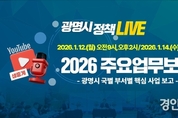 (경인미래신문=민경호 기자) 광명시(시장 박승원)가 2026년 시정 운영 방향과 주요 사업 추진계획을 시민에게 투명하게 공개한다. 시는 오는 12일과 14일 열리는 주요업무보고회를 광명시 공식 유튜브 채널에서 생중계한다고 9일 밝혔다. 주요업무보고회는 한 해 동안의 시정 운영 방향과 실행계획을 확인하고 점검하는 자리로 2026년 광명시가 중점적으로 추진할 핵심 사업과 부서별 세부 실행계획을 공유하는 회의다. 이번 보고회에는 시장과 부시장을 비롯해 국·과장이 직접 참석해 신규 사업과 주요 현안을 보고하고 정책 추진 방향을 설명한다. 민선8기 시정 성과를 바탕으로 도시 성장, 민생 안정, 복지 강화, 안전한 도시 조성 등 시민 삶의 질을 높이기 위한 정책 방향과 함께, 국민주권정부의 국정과제와의 연계 방안도 심도 있게 논의할 예정이다. 회의는 12일 오전 9시와 오후 2시, 14일 오전 10시 등 총 3회 중계된다. 12일 오전에는 안전건설교통국, 신도시개발국, 도시주택국, 친환경사업본부가 보고하며 같은 날 오후에는 사회복지국, 보건소, 자치행정국, 출자·출연기관이 참여한다. 14일 오전에는 경제문화국, 평생학습사업본부를 비롯해 시장 직속·부시장 직속 부서와 기