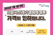 (경인미래신문=민경호 기자) 의왕시(시장 김성제)가 물가 상승 및 경기 침체로 인한 시민들의 경제적 부담을 완화하기 위해 2026년 1월 1일부터 쓰레기 종량제봉투 판매가격을 인하한다. 이번 가격 인하 대상은 일반용 및 재사용 종량제봉투이며 ▲5리터 봉투는 190원에서 150원으로 ▲10리터 봉투는 350원에서 300원으로 ▲20리터 봉투는 680원에서 550원으로 인하된다. 또한 ▲50리터 봉투는 1700원에서 1400원으로 ▲75리터 봉투는 2630원에서 2100원으로 각각 조정된다. 가격 인하 이전에 구매한 종량제봉투는 그대로 사용 가능하고 음식물 종량제봉투, 공사장 생활폐기물 포대, 대형폐기물 신고필증은 가격 등은 변동 없다. 김성제 시장은 “종량제봉투는 시민 생활과 밀접한 만큼, 이번 가격 인하가 가계 부담 완화에 도움이 되길 바란다”며 “가격 인하 시점이 2026년 1월 1일이므로 그전까지 각 가정에서 필요한 양만 구입해 주시길 바란다”고 전했다.