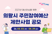 (경인미래신문=민경호 기자) 의왕시(시장 김성제)가 시민이 예산 편성 과정에 직접 참여해 지역에 필요한 사업을 제안하는 ‘2026년 주민참여예산제’운영에 본격 나선다. 이번 주민참여예산의 총규모는 약 50억 원으로, 시 일반회계 예산의 1% 범위 내에서 편성된다. 특히 올해 공모에서는 ‘청년·청소년 대상 사업’과 ‘안전사고 예방 관련 사업’을 신규 우선 지원 대상으로 선정할 예정으로 온라인 플랫폼 ‘주민이(e)참여’를 활용해 시민들의 사업 기획 및 제안 접근성을 대폭 높였다. 사업 제안은 3월 3일부터 5월 29일까지 받으며 의왕시민은 물론 관내 직장인과 학생 누구나 참여할 수 있다. 공모 분야는 시 전체를 대상으로 하는 ‘시 정책사업’과 동 단위 불편 사항을 해소하기 위한 ‘지역현안사업’으로 나뉜다. 신청은 ‘주민이(e)참여’ 또는 시 홈페이지를 통해 온라인으로 하거나 의왕시청 기획예산과 및 각 동 주민센터의 방문·우편으로 가능하다. 김성제 시장은 “주민참여예산제는 우리 동네의 변화를 시민이 직접 만들 수 있는 소중한 기회”라며 “청년과 안전 분야를 비롯해 시민 들의 참신하고 실효성 있는 아이디어가 시정에 적극 반영되길 기대한다”고 밝혔다.